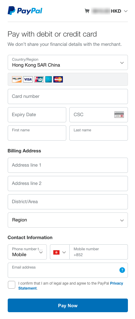 - Pickup address: Unit J, 6/F, Phase 3, Kwun Tong Industrial Centre, 448-458 Kwun Tong Road, Kwun Tong, Hong Kong